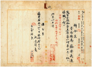 三 台南庁長杉本茂俊ノ内申ニヨリ台南庁属藤井義通ニ経費及ヒ官庁事務ノ都合上文官分限令第一一条第一項第四号ニ依リ休職ヲ命ス