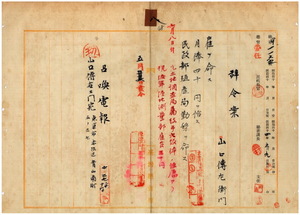 八 台湾総督府民政部殖産局長高田元治郎ノ具申ニ依リ林野調査図根測量員ニ充当セシムル為メ陸軍陸地測量部雇員山口伝左衛門ニ雇ヲ命シ民政部殖産局勤務ヲ命七 花蓮港庁技手松岡謙受ハ疾病ニ罹リ職ニ堪ヘサル旨ヲ以テ辞職願ニ依リ本官ヲ免ス