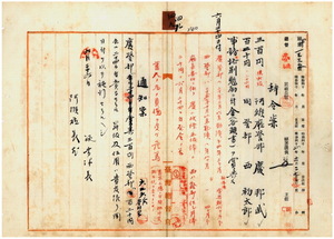 四九 阿緱庁長佐藤謙太郎ノ電報稟申ニ依リ蕃界不穏ニ付キ鎮撫中阿緱庁管内トア社ニ於テ蕃人ノ為メニ殺害セラレタル阿緱庁警部慶邦武ト阿緱庁警部補西初太郎ニ事務格別勉励ニ付キ一時金ヲ賞与ス