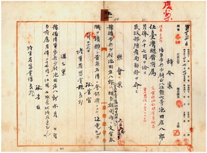 五一 台湾総督府民政部殖産局長高田元治郎ノ具申ニ依リ民政部殖産局林野調査課勤務台湾総督府雇予備陸軍歩兵少尉池田庄八郎ヲ台湾総督府属ニ任シ民政部殖産局勤務ヲ命スルノ件ニ付キ陸軍省恩賞課長ヘ照会シタル処当人ハ陸軍省ノ文官奉職請願者名簿ニ未登録ナル者ト判明シタルニ依リ本案件ハ廃案トス