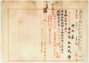 一八 基隆郵便局勤務台湾総督府通信属本田武雄ハ脚気ニ罹リ職ニ堪ヘサル旨ヲ以テ辞職願ニ依リ事務格別勉励ニ付キ一時金ヲ賞与シ本官ヲ免ス