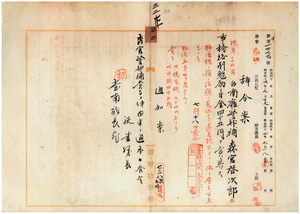 三二 台南庁長松木茂俊ノ内申ニ依リ疾病ノ為メ退官ヲ願出タル台南庁警部補森宮啓次郎ニ事務格別勉励ニ付キ一時金ヲ賞与ス