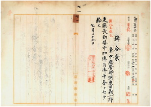 七一 台中庁長枝徳二ノ内申ニ依リ彰化支庁長台中庁警部河東田義一郎ニ支庁長勤務中加俸月俸一〇分ノ七ヲ給ス