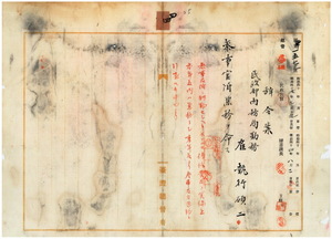四 台湾総督府参事官楠正秋ノ内申ニ依リ台湾総督府民政部内務局勤務台湾総督府雇執行碩二ニ俸給費目ノ関係上本年度内参事官附兼務ヲ命ス