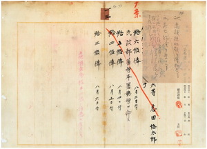 一三 台湾総督府民政部蕃務本署長大津麟平ノ内申ニ依リ蕃人ノ襲撃ヲ受ケ危篤ノ民政部蕃務本署勤務測量事務嘱託志田梅太郎ヲ台湾総督府技手ニ任シ昇級ノ上民政部蕃務本署勤務ヲ命シ更ニ昇給ノ件ハ実際死亡二ヶ月後ノ為メ廃案トス