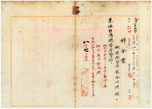 一五 台湾総督府民政部蕃務本署長大津麟平ノ内申ニ依リ角板山駐在北蕃監視区長事務補助ノ為メ桃園庁警部長谷川照雄ヲ台湾総督府警部ニ兼任ス