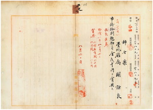 二七 台北庁長井村大吉ノ内申ニ依リ病気ニテ危篤トナリタル台北庁属関謙良ニ事務格別勉励ニ付キ一時金ヲ賞与ス