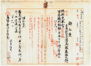 三六 台南郵便局勤務台湾総督府通信属藤森謙太郎ハ疾病ニ罹リ職ニ堪ヘサル旨ヲ以テ辞職願ニ依リ本官ヲ免シ事務格別勉励ニ付キ一時金ヲ賞与ス