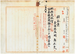 四二 台南庁庶務課学務係勤務台南庁属岡島正交ハ疾病ニ罹リ職ニ堪ヘサル旨ヲ以テ退官願ニ依リ本官ヲ免シ事務格別勉励ニ付キ一時金ヲ賞与ス