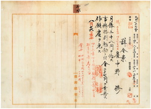 五六 台湾総督府民政部殖産局勤務台湾総督府雇中野修ハ教育召集ニ応スル為メ辞職願ニ依リ増俸ノ上事務格別勉励ニ付キ一時金ヲ賞与シ雇ヲ免ス