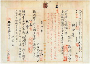 五七 在清国福州領事高洲太助ハ御用済ニ付キ嘱託ヲ解キ事務格別勉励ニ付キ一時金ヲ賞与シ、福州副領事土谷米蔵ニ福州地方ニ於ケル調査事務ヲ嘱託ス