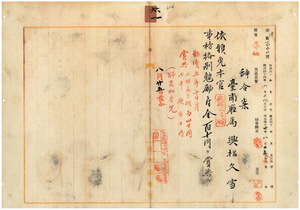 六一 台南庁属興梠久雪ハ疾病ニ罹リ職ニ堪ヘサル旨ヲ以テ退官願ニ依リ本官ヲ免シ事務格別勉励ニ付キ一時金ヲ賞与ス