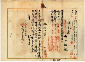 九 台湾総督府農事試験場長高田元治郎ノ内申ニ依リ東北帝国大学農科大学副手嘱託山田拍採ヲ台湾総督府農事試験場技手ニ任シ七級俸ヲ給シ(八月三一日付)、六級俸(九月一〇日付)、五級俸(九月二〇日付)ト昇級セシム