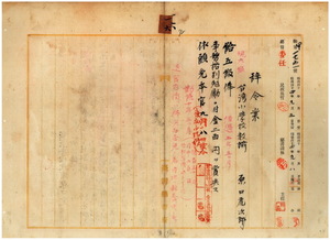 一六 台南尋常高等小学校勤務台湾小学校教諭原口虎次郎ハ疾病ニ罹リ職ニ堪ヘサル旨ヲ以テ退職願ニ依リ昇級ノ上事務格別勉励ニ付キ一時金ヲ賞与シ本官ヲ免ス