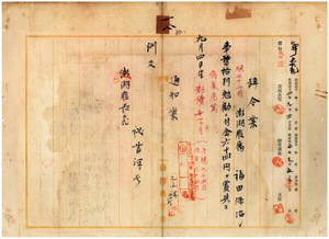一八 澎湖庁長ノ電報内申ニ依リ麻拉里亜ニテ入院治療中危篤ニ陥リタル澎湖庁属福田保治ニ事務格別勉励ニ付キ一時金ヲ賞与ス