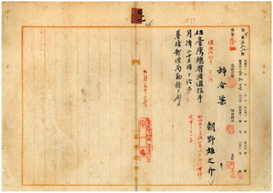 三一 基隆郵便局長藤井恭敬ノ内申ニ依リ基隆郵便局電信課電信掛通信部勤務基隆郵便局通信助手朝野雄之介ヲ台湾総督府通信手ニ任シ基隆郵便局勤務ヲ命ス