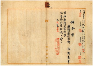 公學校教諭北野嘉重兼任台灣公學校長、九芎林公學校長ノ件