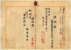 四五 台北庁長井村大吉ト新竹庁長家永泰吉郎ノ内申ニ依リ和尚洲公学校勤務台湾公学校教諭兼台湾公学校長大苗大雅ノ兼官ヲ免シ新竹公学校勤務ヲ命ス