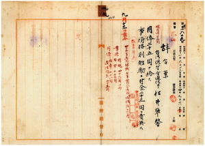 四九 台北郵便局長伊藤金弥ノ内申ニ依リ病気危篤ノ台湾総督府通信手松井寧馨ニ昇給ノ上事務格別勉励ニ付キ一時金ヲ賞与ス