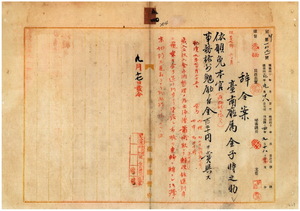 五四 台南庁属金子時之助ハ軽便鉄道列車ニ飛乗ラントシテ墜落シ右腕ヲ車輪ニ轢過セラレ加療切断ノ為メ不具者トナリ職ニ堪ヘサル旨ヲ以テ辞職願ニ依リ本官ヲ免シ事務格別勉励ニ付キ一時金ヲ賞与ス