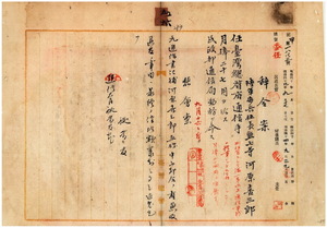 五六 台湾総督府民政部通信局長心得角源泉ノ内申ニ依リ元大阪堀江郵便局勤務逓信省通信書記補河原喜三郎ヲ台湾総督府通信手ニ任シ民政部通信局勤務ヲ命ス