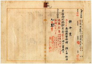 六二 南投庁長久保通猷ノ稟申ニ依リ風水害ノ救助ニ努メタル結果麻剌里亜ニ罹リ危篤トナリタル南投庁警部補佐々木郁治ニ事務格別勉励ニ付キ一時金ヲ賞与ス