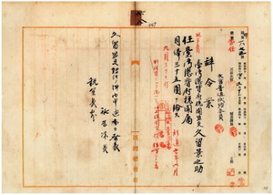 六八 台湾総督府税関長岩政憲三ノ内申ニ依リ淡水税関勤務台湾総督府税関監吏久留景之助ヲ台湾総督府税関属ニ任ス