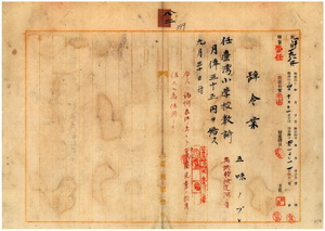 五味ツフ任台灣小學校教諭ノ件