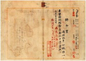 八三 台湾総督府民政部通信局長心得角源泉ノ内申ニ依リ病気危篤ノ台湾総督府通信技手小林惟一ニ事務格別勉励ニ付キ一時金ヲ賞与ス