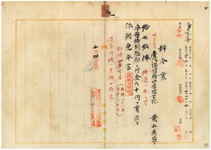 九 台湾総督府中学校書記景山真盛ハ疾病ニ罹リ職ニ堪ヘサル旨ヲ以テ辞職願ニ依リ昇級ノ上事務格別勉励ニ付キ一時金ヲ賞与シ本官ヲ免ス