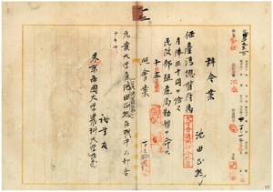一三 台湾総督府民政部殖産局長高田元治郎ノ具申ニ依リ元台湾演習林在勤東京帝国大学農科大学雇池田正熊ヲ台湾総督府属ニ任シ民政部殖産局勤務ヲ命ス