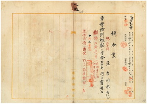 一五 台湾総督府民政部蕃務本署長大津麟平ノ内申ニ依リ病気ノ為メ辞職ヲ出願シタル民政部蕃務本署勤務台湾総督府雇古川末彦ニ事務格別勉励ニ付キ一時金ヲ賞与ス