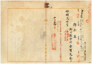 五二 中港支庁長新竹庁警部古賀文也ハ疾病ニ羅リ職ニ堪ヘサル旨ヲ以テ退官願ニ依リ本官ヲ免ス、但シ内情ハ病気又ハ帰省ニ際シ人民(本島人)ヨリ金銭ノ贈遺ヲ受ケタリトノ民政部内務局長ヘノ投書ヲ発端トス
