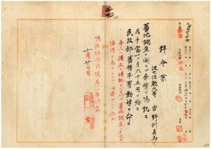 五四 台湾総督府民政部蕃務本署長大津麟平ノ内申ニ依リ元陸軍通訳吉野利喜馬ニ蕃地調査ニ関スル事務ヲ嘱託シ民政部蕃務本署勤務ヲ命ス、本人ハ漢文ニ堪能ナルヲ以テ蕃地調査ノ上之カ編修ヲ為サシムルノ必要アルニ依ル