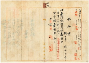 七九 台湾総督府民政部通信局長心得角源泉ノ内申ニ依リ元逓信省航路標識看守武田由喜ヲ台湾総督府灯台看守ニ任シ安平灯台勤務ヲ命ス