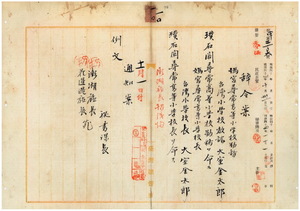 一〇 花蓮港庁長石橋亨ノ内申ニ依リ澎湖庁媽宮尋常高等小学校勤務台湾小学校教諭大室金太郎ニ花蓮港庁璞石閣尋常高等小学校勤務ヲ命シ璞石閣尋常高等小学