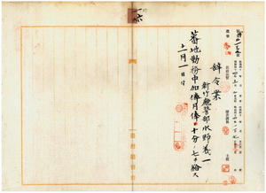 一六 新竹庁長家永泰吉郎ノ内申ニ依リ樹砥林支庁タコナン隘勇監督所勤務ノ蕃務所属新竹庁警部水野義一ニ蕃地勤務中加俸月俸一〇分ノ七ヲ給ス