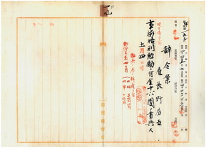 一九 台湾総督府民政部殖産局長高田元治郎ノ内申ニ依リ徴兵ノ為メ解雇ノ雇長野房吉ニ事務格別勉励ニ付キ一時金ヲ賞与ス