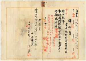 二〇 台中庁警部常世田万吉ハ疾病ニ罹リ職務ニ堪ヘサル旨ヲ以テ辞職願ニ依リ昇級ノ上事務格別勉励ニ付キ一時金ヲ賞与シ本官ヲ免ス