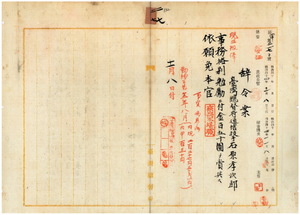 二七 台北郵便局勤務台湾総督府通信技手石原孝次郎ハ疾病ニ罹リ職ニ堪ヘサル旨ヲ以テ事務格別勉励ニ付キ一時金ヲ賞与シ本官ヲ免ス