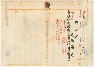 三〇 台湾総督府民政部殖産局勤務台湾総督府雇後藤茂ハ徴兵入営ノ為メ辞職願ニ依リ事務格別勉励ニ付キ一時金ヲ賞与ス