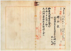 四二 台湾総督府民政部蕃務本署長大津麟平ノ内申ニ依リ桃園庁警部兼台湾総督府技手ノ山県四郎ト井上永次ヲ台湾総督府警部ニ任シ民政部蕃務本署勤務ヲ命ス