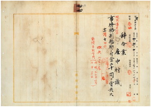 雇中村識事務格別勉勵金貳拾円賞與ノ件
