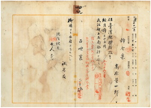 四九 台湾総督府民政部土木局長事務取扱内田嘉吉ノ内申ニ依リ元摂津紡績株式会社技手高原量四郎ヲ台湾総督府技手ニ任シ民政部土木局勤務ヲ命ス