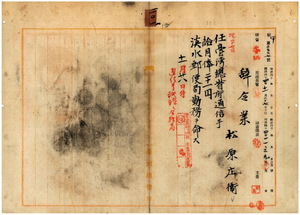 一〇一 淡水郵便局長小野塚斧太郎ノ内申ニ依リ淡水郵便局通信助手松原庄衛ヲ台湾総督府通信手ニ任シ淡水郵便局勤務ヲ命ス
