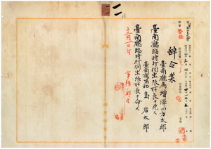 台南廳囑託島岩太郎臨時打狗出張所長ヲ命スルノ件