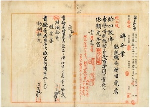 三〇 澎湖庁属折田虎彦ハ疾病ニ罹リ職ニ堪ヘサル旨ヲ以テ辞職願ニ依リ昇給ノ上事務格別勉励ニ付キ一時金ヲ賞与シ本官ヲ免ス