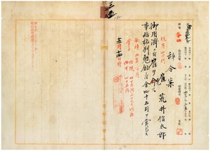 雇荒井信太郎御用濟ニ付解雇ノ件