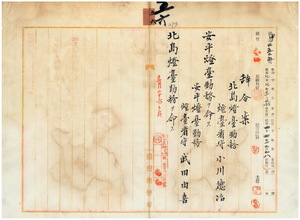 五六 台湾総督府民政部通信局長心得角源泉ノ内申ニ依リ北島灯台勤務台湾総督府灯台看守小川徳治ニ安平灯台勤務ヲ命シ、安平灯台勤務台湾総督府灯台看守武田由喜ニ北島灯台勤務ヲ命ス
