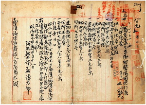 四 台湾総督府陸軍経理部長事務取扱田中三郎ヨリ内議ノアリタル蕃薯藔歩兵分遣隊小銃射撃場用地トシテ阿緱庁蕃薯藔ノ土地取得ノ為メ台南庁効忠里安平街ノ安平運輸部付属鍛工場・同里海頭社ノ元運輸部安平出張所宿舎・同里安平街ノ安平陸軍宿舎ヲ代償トシテ交換ニ付キ台南庁台南市丙寄留ノ大垣猪狼所有ノ阿緱庁港西上里旗尾庄ノ建物敷地ト畑地ト交換スルコトトナリタル件並ニ阿緱庁長佐藤謙太郎ヨリ交換引渡済報告ノ件